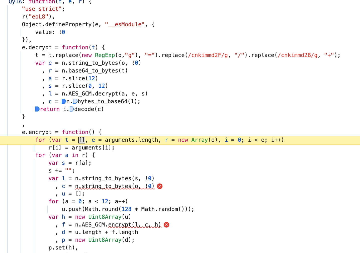 知网登陆密码加密探究 2025年12月3日 Posted in js * 所有相关信息仅技术学习调研,不公开任何侵犯公司价值信息,若有侵犯,请联系删除 当登陆知网账号会发现存在加密 定位加密位置 发现做了一个aes加密 key 属于固定值 复现算法 * 所有相关信息仅技术学习调研,不公开任何侵犯公司价[……] 阅读全文